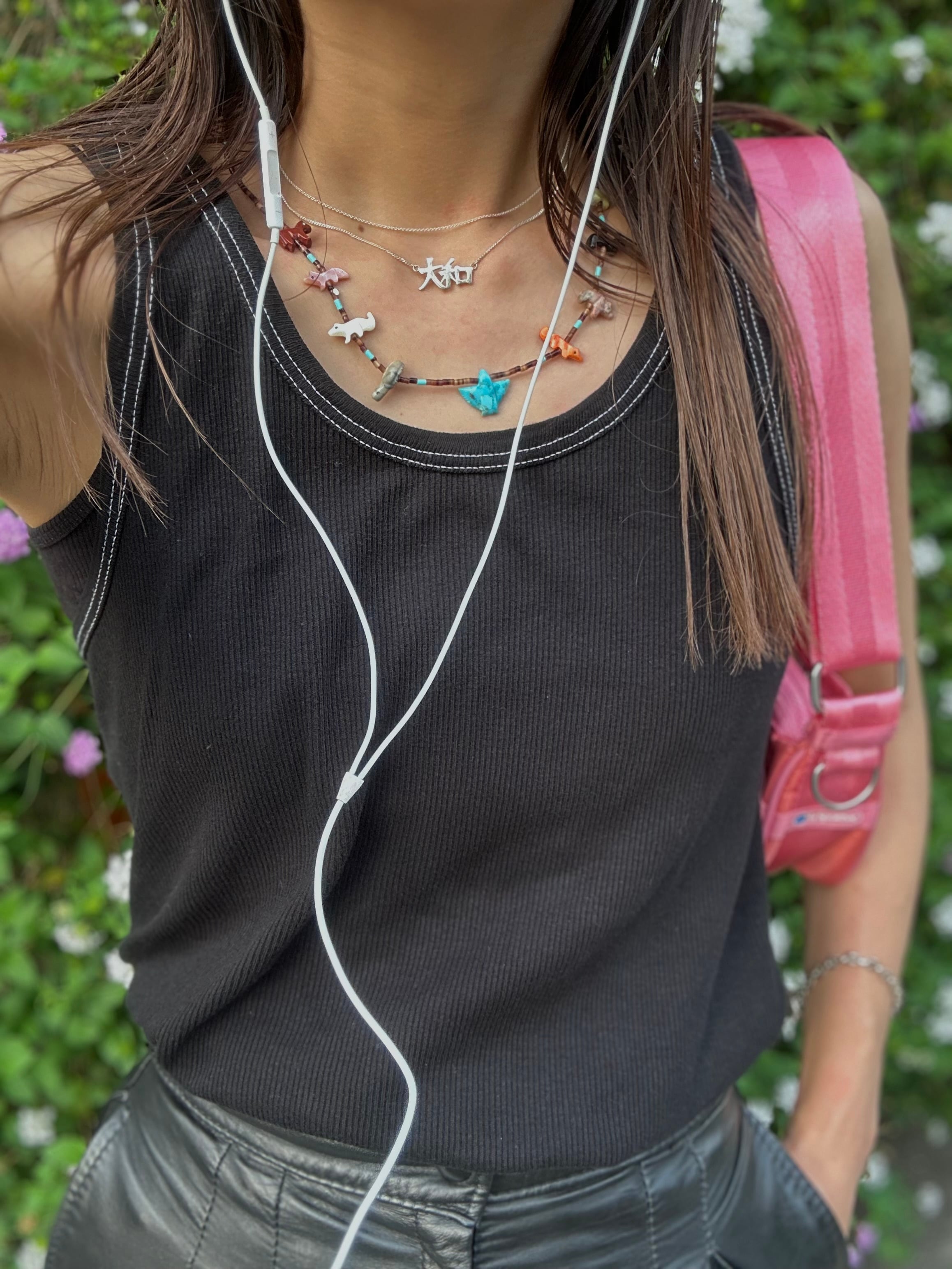 写真の重ね付け付けしているnecklaceは非売品です。