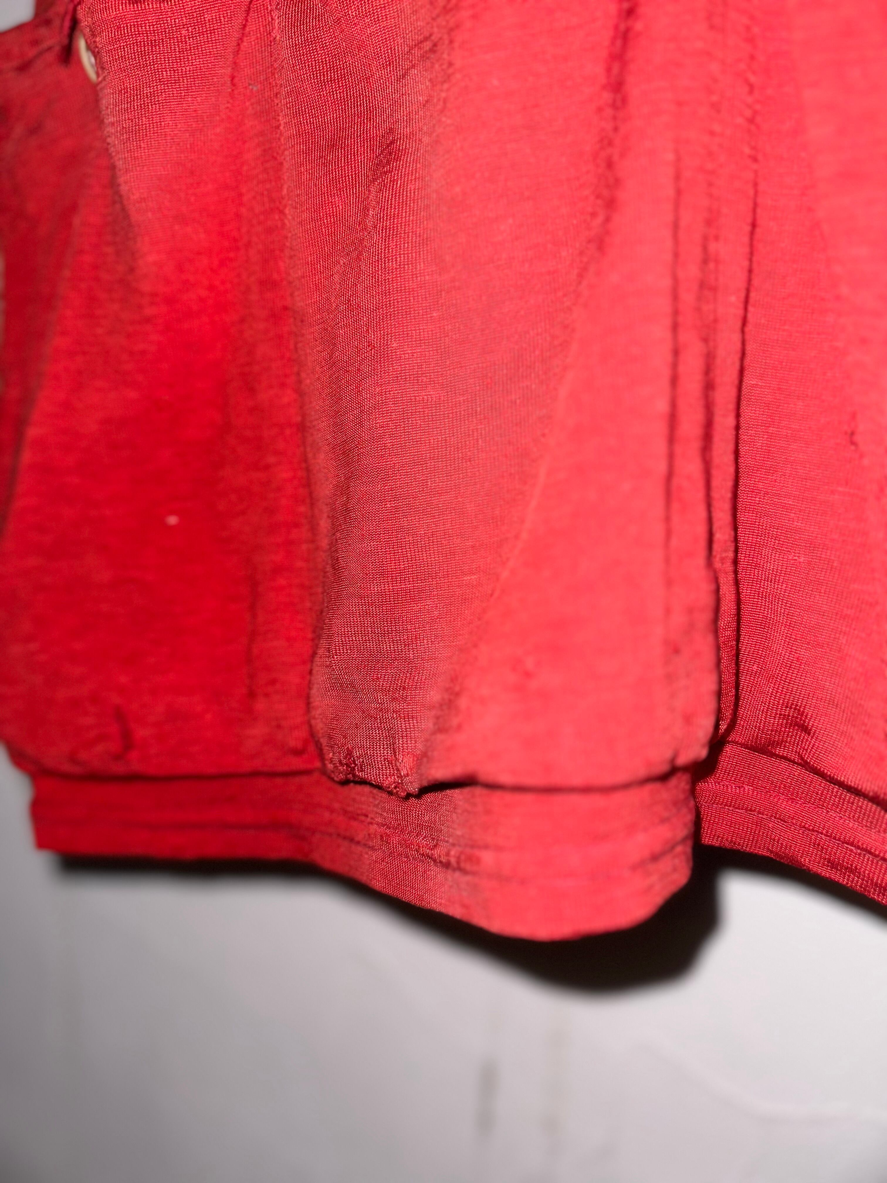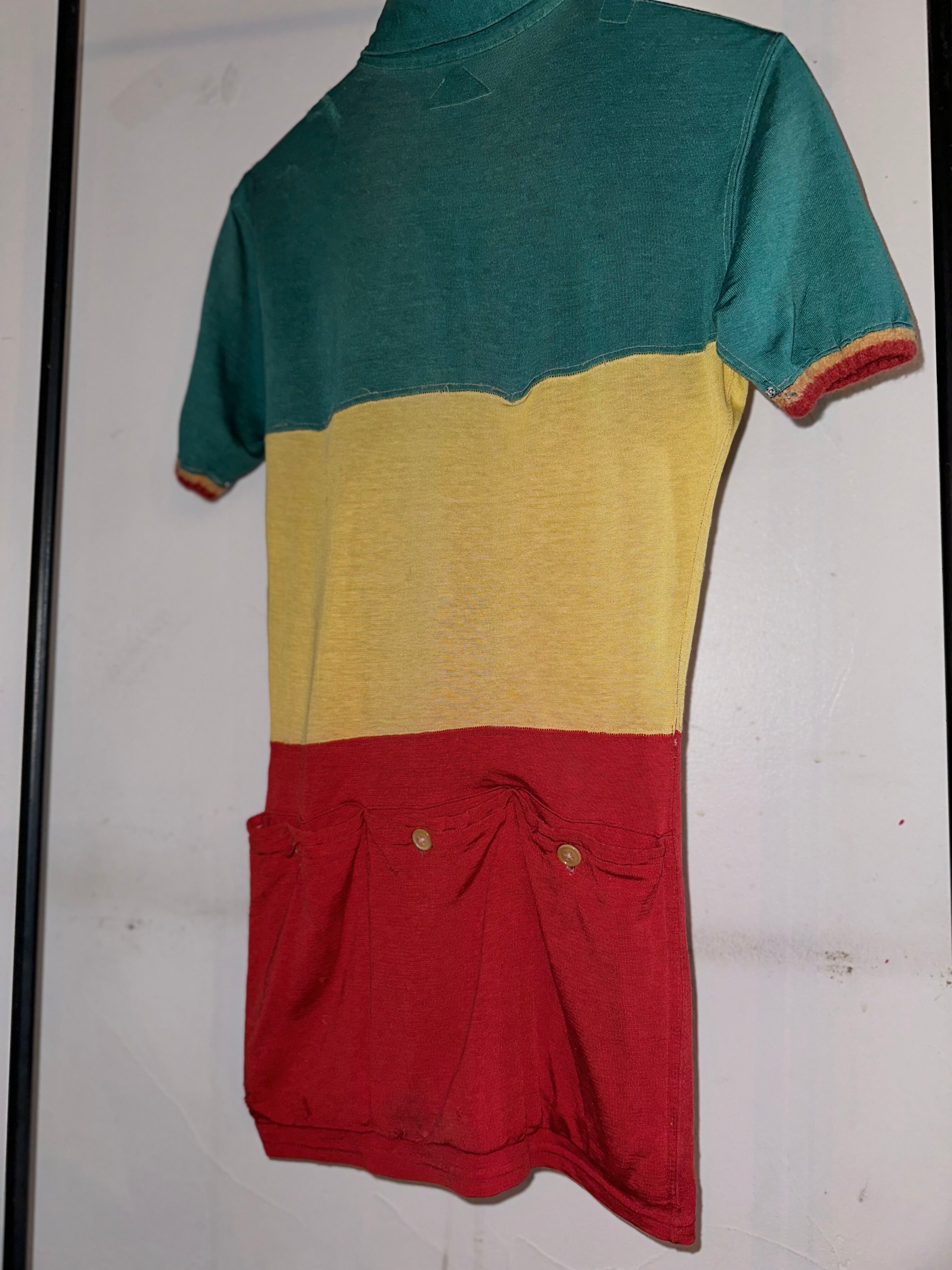 サイクルジャージの中でも珍しいラスタカラーが目を惹きます。フィット感があり伸縮性は殆どございません。バイカーショーツなど遊び心のある合わせを楽しまれても良いかと思います。